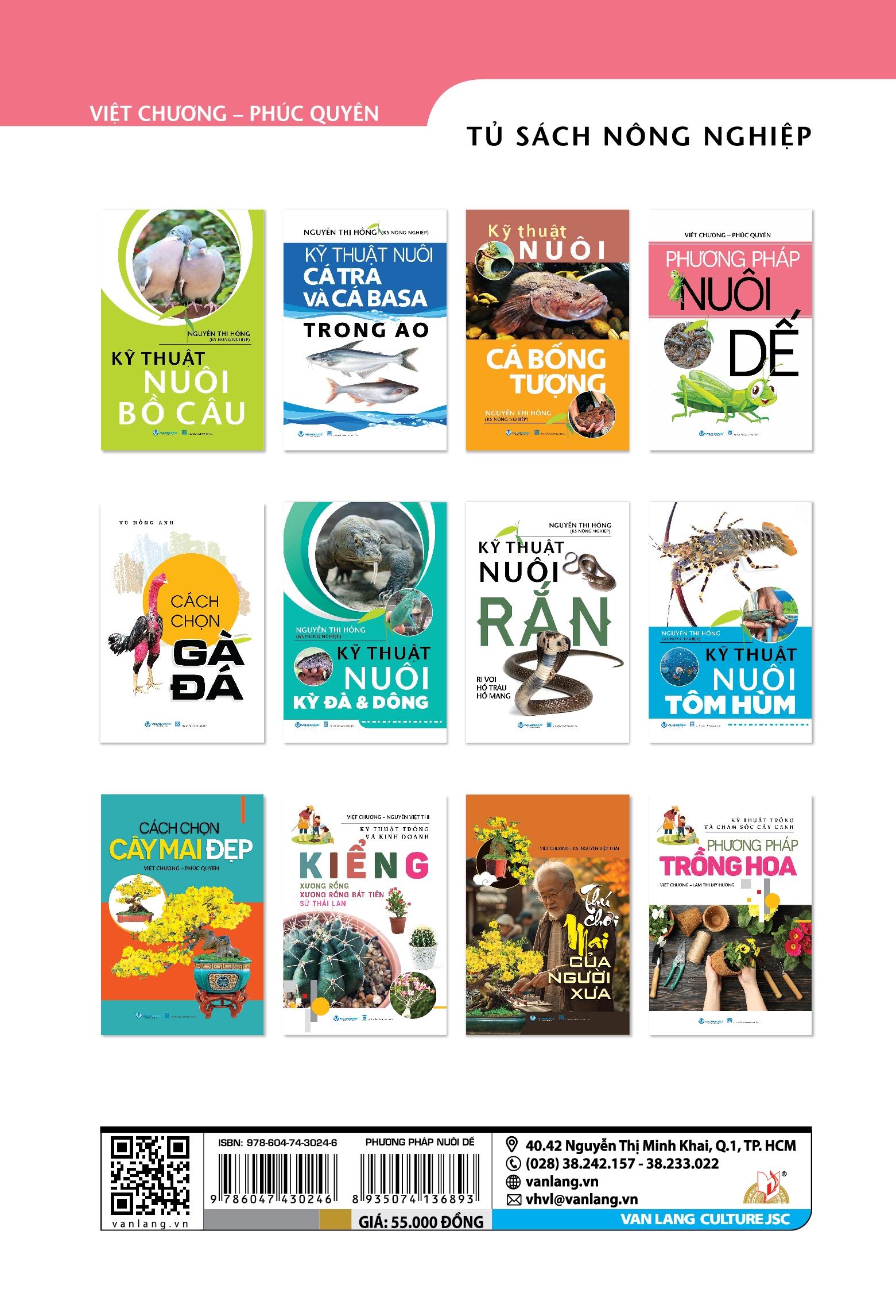 Nuôi dế có thể tận dụng nhân công nhàn rỗi trong nhà như người đã nghỉ hưu, phụ nữ làm việc nội trợ vẫn chăm sóc được, vì công việc không nhiều lại nhẹ nhàng.Hy vọng cuốn sách Phương pháp nuôi dế (Tái bản) sẽ là sự gợi mở cho những ai có hứng thú đầu tư vào lĩnh vực chăn nuôi nhẹ nhàng khá đặc biệt này.