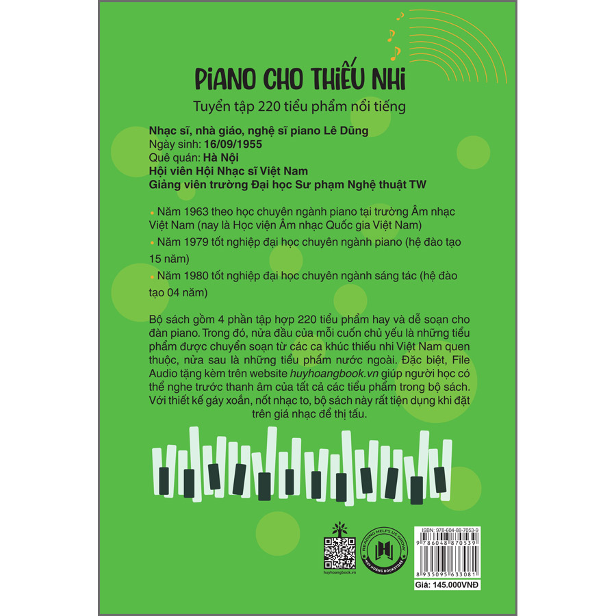 Piano Cho Thiếu Nhi - Tuyển Tập 220 Tiểu Phẩm Nổi Tiếng - Phần 2  Tái Bản: Năm 2023 Lê Dũng là một trong những lớp nghệ sĩ đầu tiên theo học đàn Piano một
