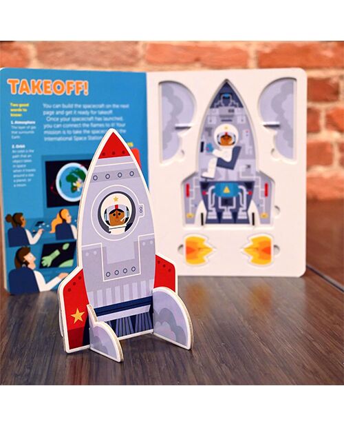 This sturdy board book is chock-full of information about a space mission alongside pages with chunky press-out pieces that kids can use to build their space journey. Kids will read about the different steps on a fun space mission, from training to returning to Earth. Tots will have a blast building the astronaut's suit and an awesome rocket, as well as making the Space Station and bringing to life the way astronauts live and work in space. They will love constructing their own space vehicle and will surely enjoy building the space capsule that will bring the space crew back to Earth!