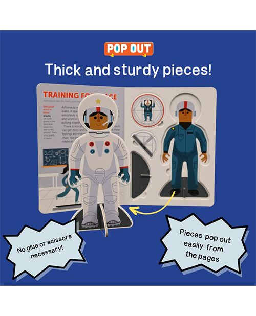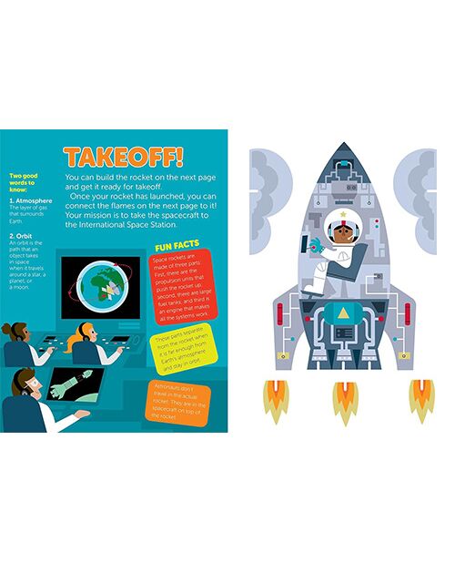 Pop Out Space Travel This sturdy board book is chock-full of information about a space mission alongside pages with chunky press-out pieces that kids can use to build their space journey. Kids will read about