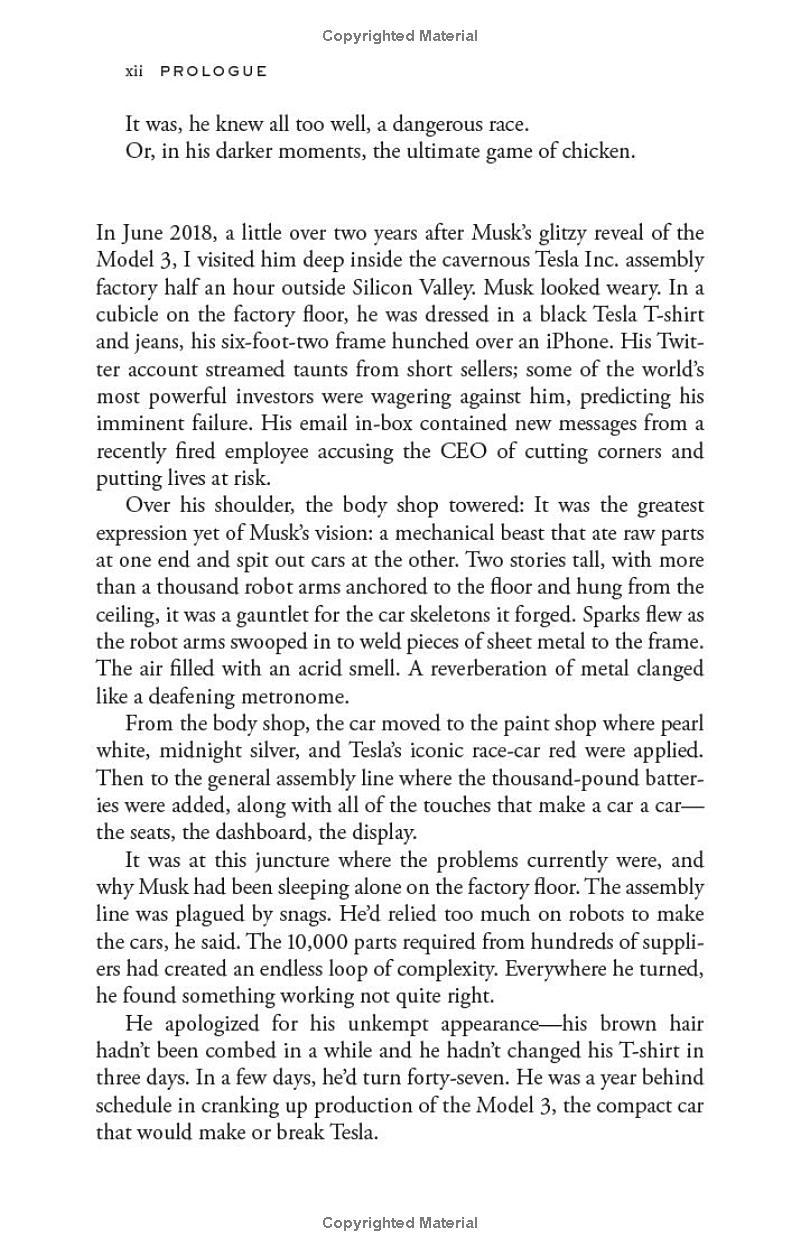 Inside the outrageous, come-from-behind story of Elon Musk and Tesla's bid to build the world's greatest car and the race to drive the future.