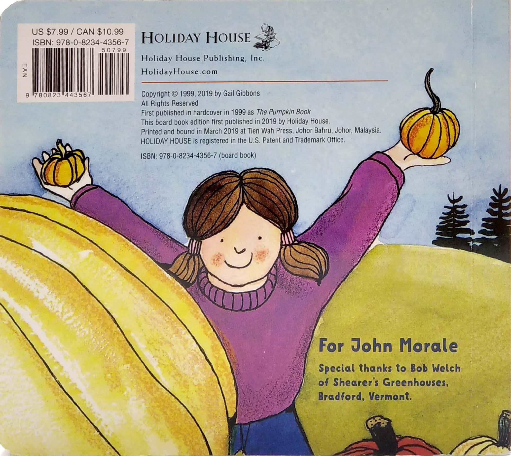 Bright orange pumpkins, glowing as jack-o-lanterns or baked into pies, are a favorite part of the autumn season-- and in this simple board book, celebrated nonfiction author Gail Gibbons turns her skills to introducing them to a young audience.