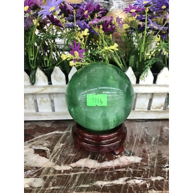 Hợp mệnh Mộc - Hỏa Chất liệu: Đá thạch anh xanh Kích thước: Đường kính 11,3 cm Khối lượng: 2,6 kg Quả cầu phong thủy được làm từ những loại đá và khoáng vật quý