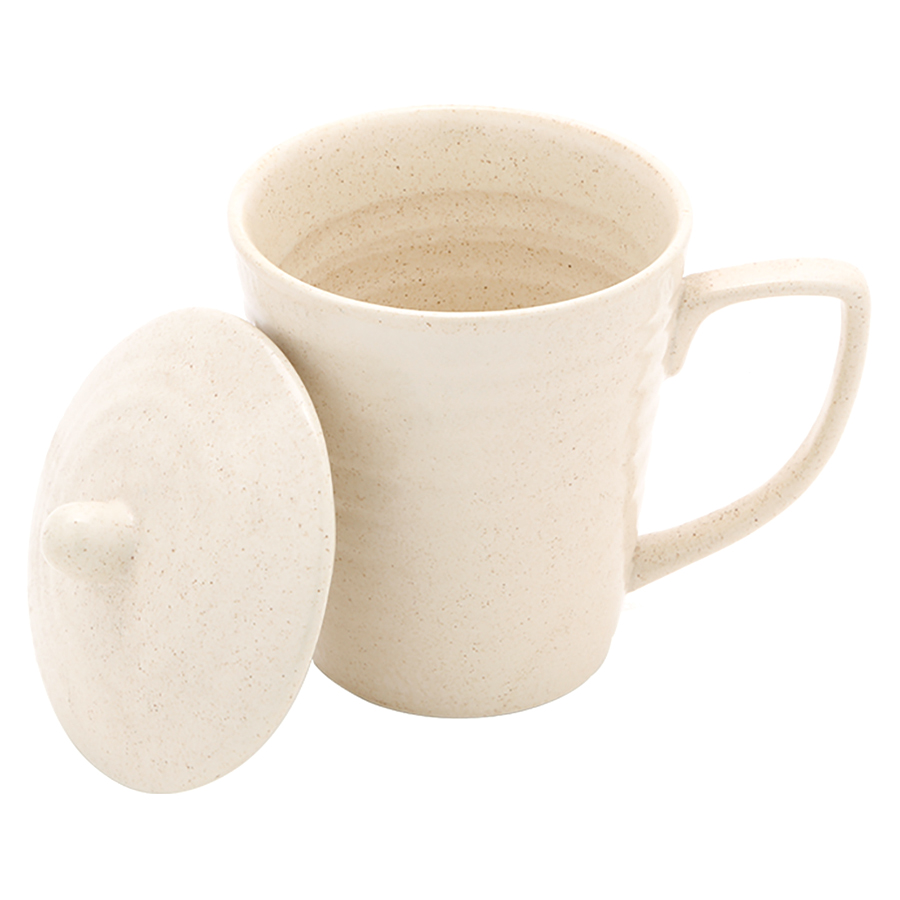 Chất liệu: gốm sứ Dung tích: 410ml Màu sắc: màu trắng Kích thước: chiều cao ly 10cm, đường kính miệng ly 7.5cm Bộ sản phẩm gồm: ly sứ, nắp sứ và muỗng Inox ***LY CÓ