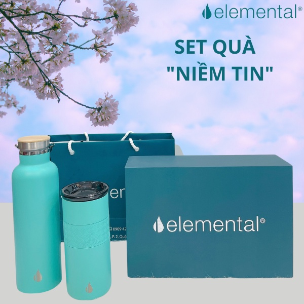 ✨[Quà tặng cao cấp-Thương hiệu Mỹ] Set hộp quà tặng Sinh nhật, set Niềm Tin, bình giữ nhiệt và ly giữ nhiệt Elemental