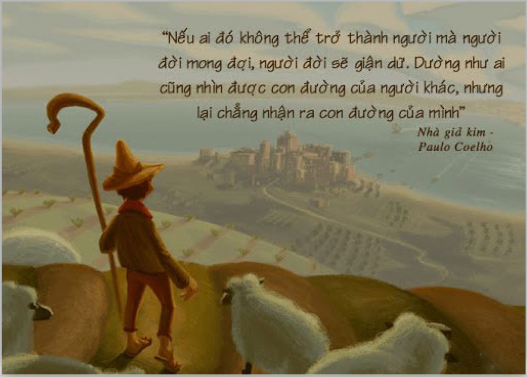 Trong cuốn tiểu thuyết Nhà Giả Kim tác giả tin mỗi người chúng ta đều có một giấc mơ do chúa dẫn đường và Người cho chúng ta lần hết từ manh mối này đến manh mối khác đển nhận ra và theo đuổi giấc mơ môt bầu nhiệt huyết to lớn “không bao giờ từ bỏ”. Khó khăn là những thử thách chưa biết đến những gì dễ dàng thường không Bất Diệt hữu trong khi mọi thứ xung quan chúng ta đề vô hạn. Quá trình mà chúng ta nỗ lực vượt qua khó khăn, vượt qua nỗi sợ hãi của chính mình mới là kho báu quan trọng nhất. Sống không quan trọng bằng ý nghĩa cuộc sống.