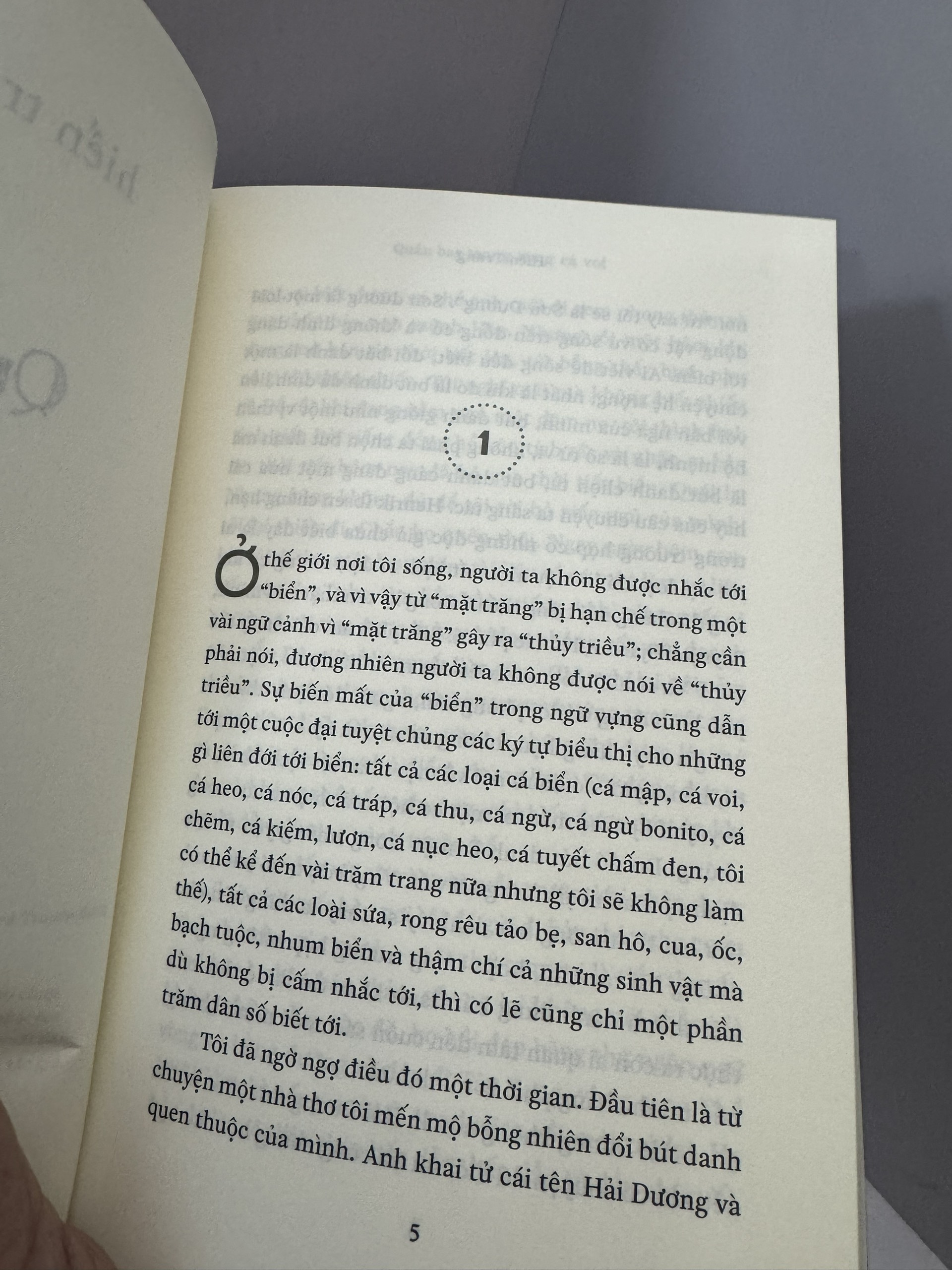 Sau khi bị nhà xuất bản từ chối bản thảo tiểu thuyết mới nhất, một nhà văn nhận ra rằng, trong thế giới cô đang sống, người ta không được quyền nhắc tới "biển". Cô tìm mọi cách để xuất bản cuốn sách của mình, và rồi hành trình kỳ lạ mở ra, dẫn cô tới một thư viện nơi những hồn ma thủ thư còn sống mãi, một quán bar như lọt thỏm trong chốn phi-thời-gian, một nhà xuất bản hoạt động trong thế giới ngầm, và những nhà văn không ai rõ danh tính.