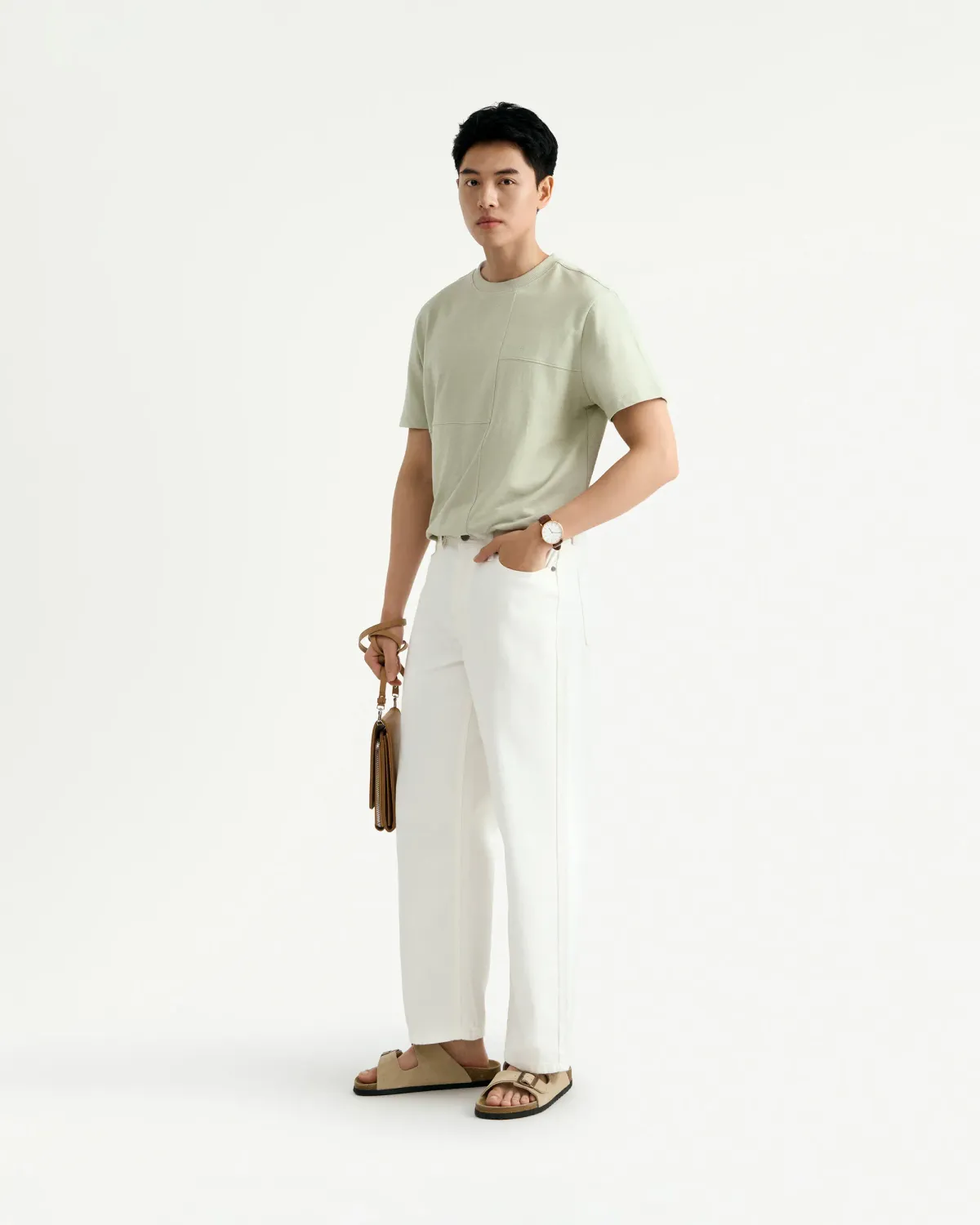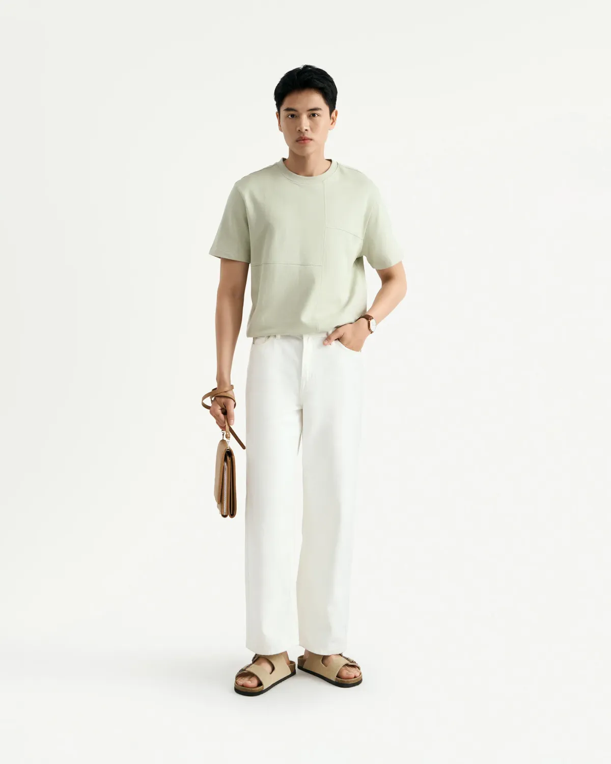 ✨Quần denim nam / Quần jean màu Trắng thêu túi sau Form Straight cropped - RT 10S25DPA011 | ROUTINE CÀ MAU