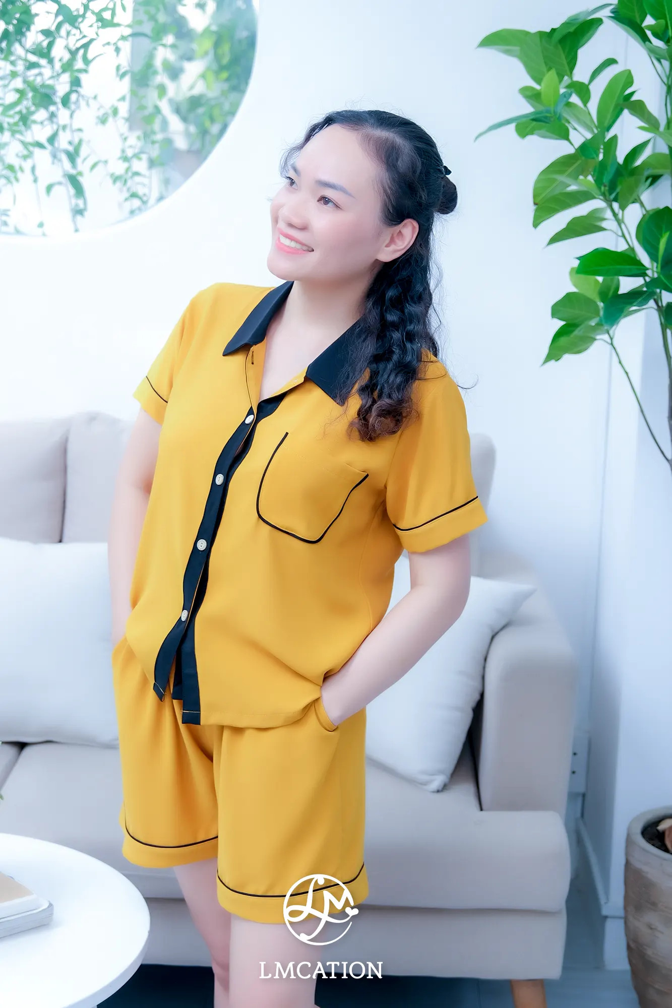Áo Pijama LMcation có tay ngắn, cổ áo bo vừa vặn, kết hợp túi trước ngực và được phối viền độc đáo. Dễ dàng phối với bất kỳ quần loại quần mặc nhà nào với