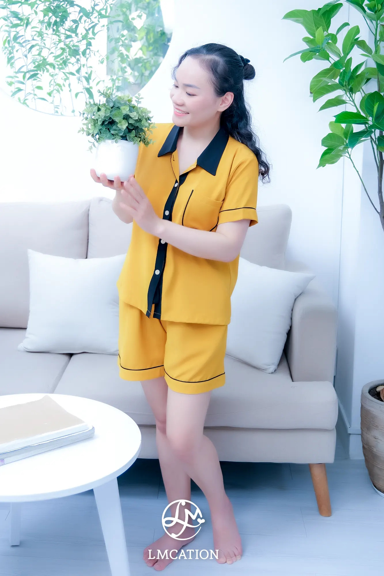 Áo có tay ngắn, cổ áo bo vừa vặn, kết hợp túi trước ngực và được phối viền độc đáo. Dễ dàng phối với bất kỳ quần loại quần mặc nhà nào với màu sắc