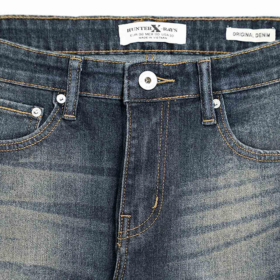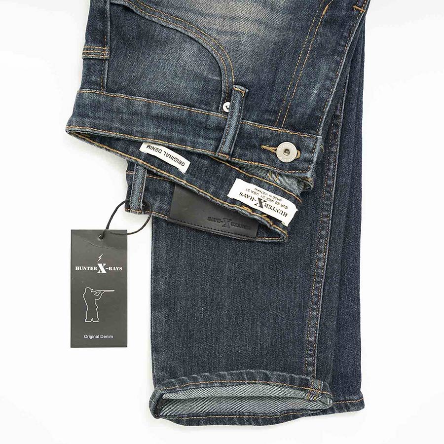 Quần Jeans Nam Cao Cấp HUNTER X-RAYS Form Slimfit Thun Màu Xanh Phủ Dơ NhẹD33 Đặc điểm nổi bật: Nút được đúc nguyên khối bằng đồng và nổi bật thương hiệu HUNTER X-RAYS đảm bảo