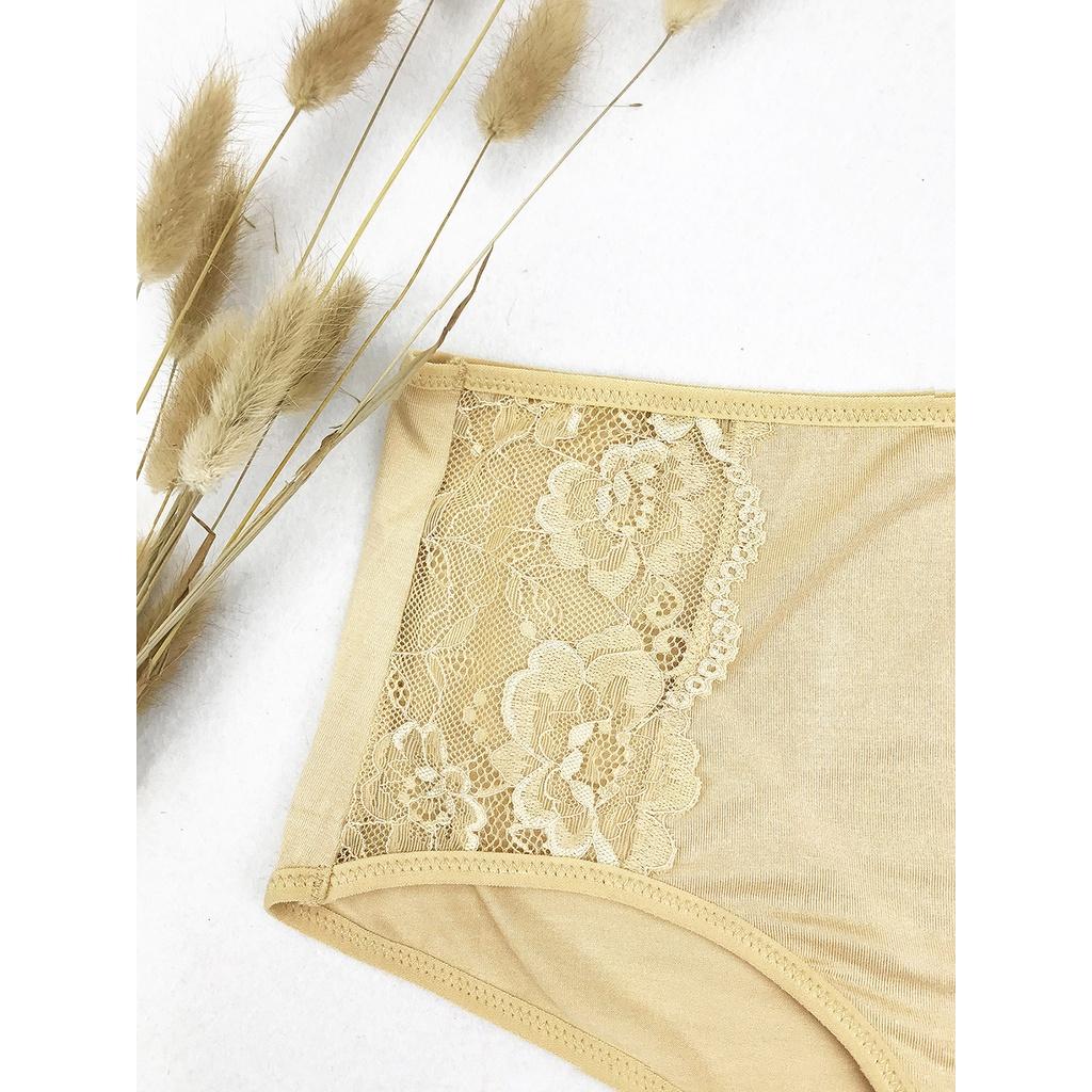 Quần lót nữ cotton cạp cao gen bụng , quần lót bigsize phối ren cho người béo 6602
