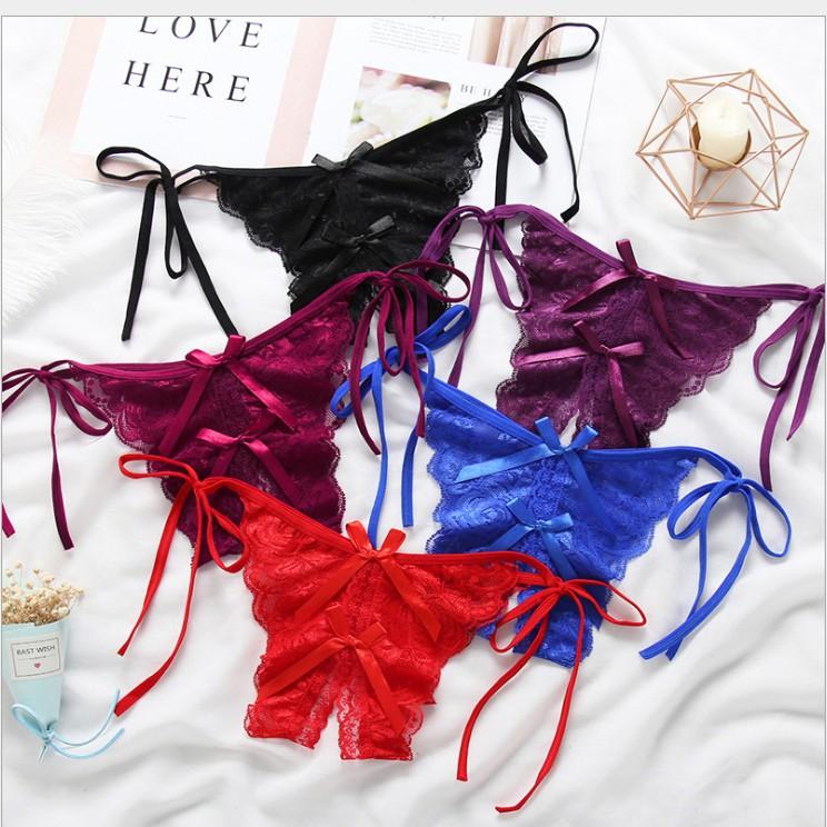 QUẦN REN NƠ LỌT KHE SEXY TỪ 40-55KG DÀNH CHO NỮ : 1. Chất liệu : Ren 2. Thiết kế : Ren, có nơ, siêu quyến rũ 3. Màu sắc : Giao màu ngẫu nhiên