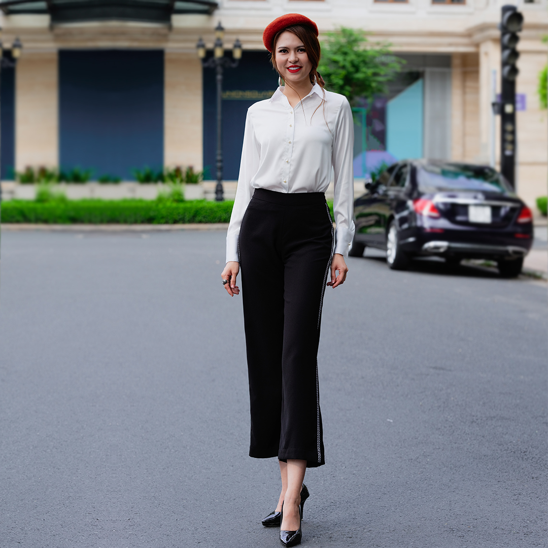 Dáng quần suông trendy là thiết kế không thể thiếu trong tủ đồ Quý cô thanh lịch, có khả năng kết hợp với nhiều kiểu áo khác nhau. Với ý nghĩa của tên gọi và