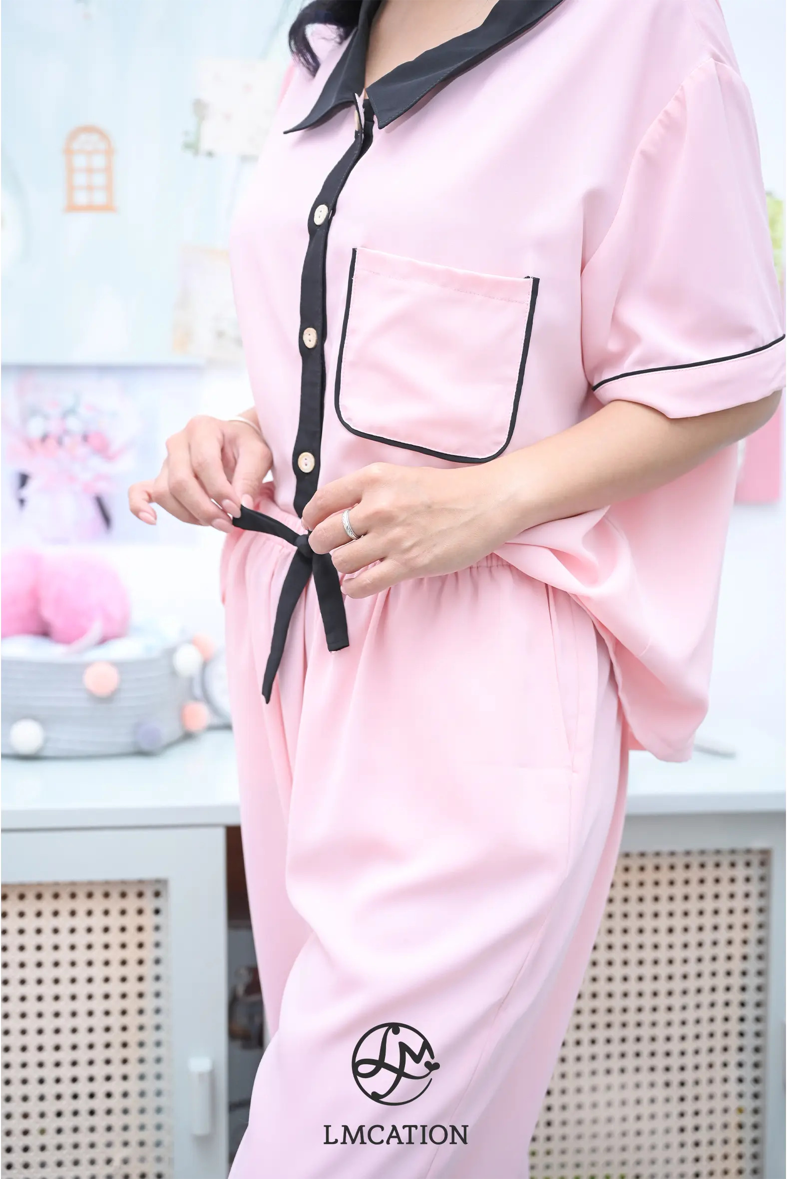 Đồ Bộ Mặc Nhà LMcation - Áo pijama & Quần đùi pijama Alia - Màu hồng phấn