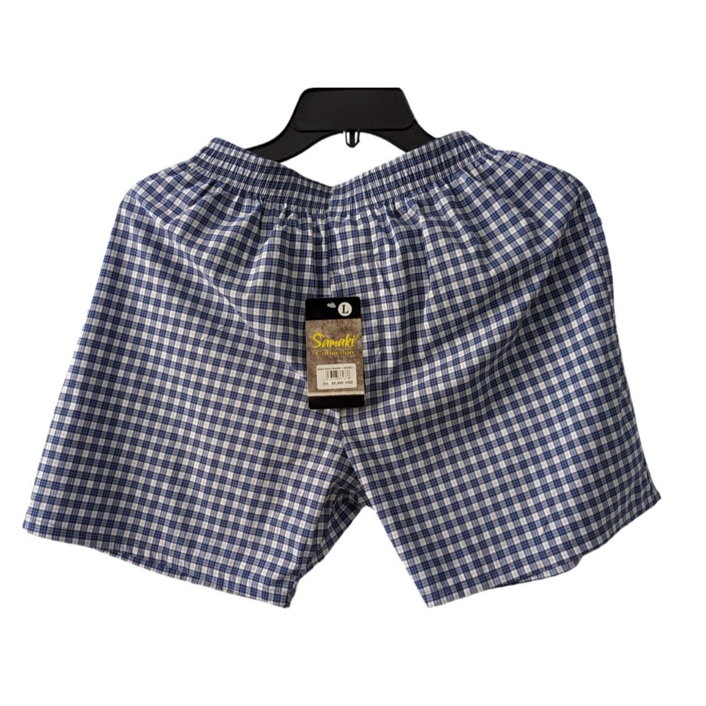 'Quần đùi lưng thun thoải mái cho hoạt động hàng ngày • Họa tiết caro đa dạng • Thấm hút mồ hôi • Thích hợp cho ngày hè nắng nóng. Chất liệu: 100% Cotton, Form