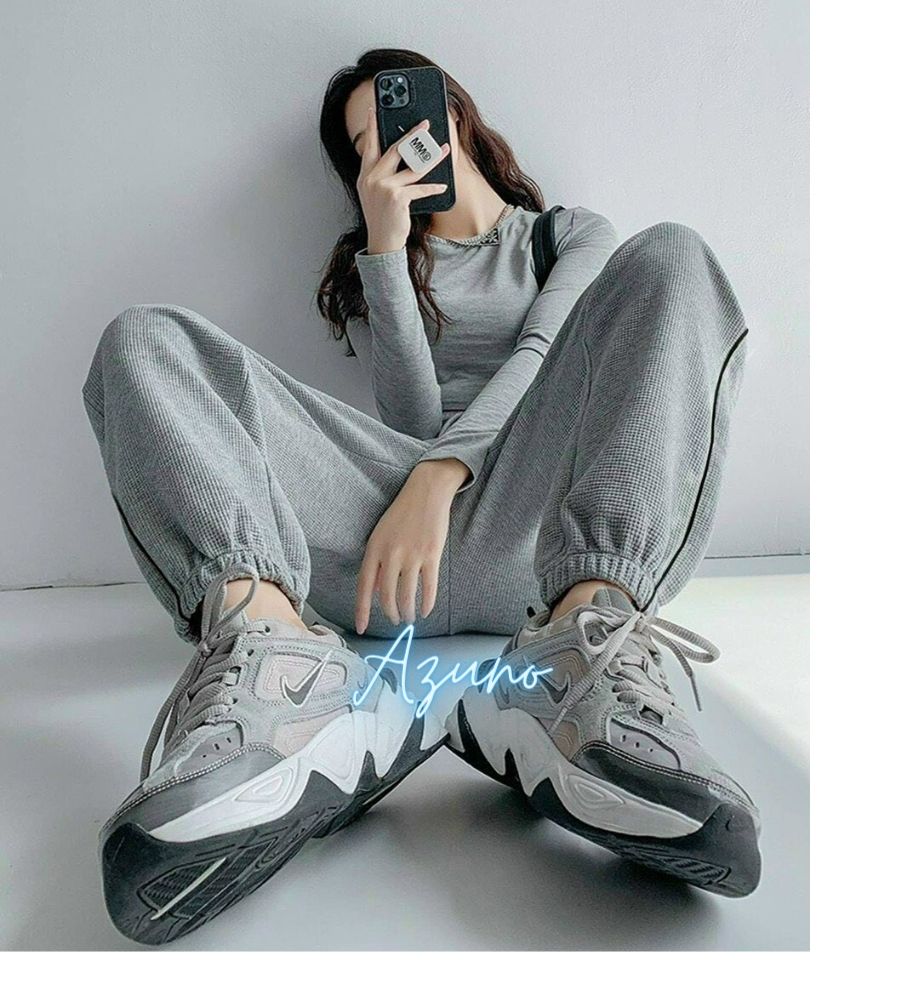 Quần nỉ jogger nữ ống rộng bo gấu mềm mịn cá tính vải da cá màu xám đen