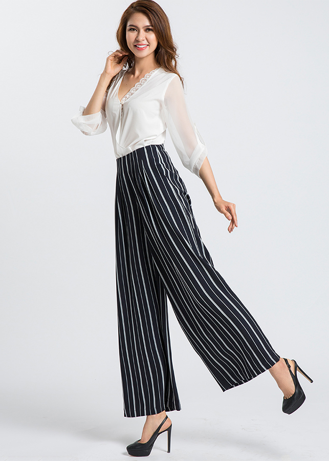 Quần Palazzo là kiểu quần ống rộng suông từ trên xuống dưới, cạp lưng cao với chất liệu nhẹ mát. Vì thế mà phái nữ rất thích sử dụng chúng trong những ngày hè thay vì  bó sát nóng nực. Quần ống rộng Palazzo tạo phong cách tự do phóng khoáng, tươi trẻ, lụa là và cực kỳ thoải mái. Những năm 60s, nhà thiết kế lừng danh Coco Chanel chính là người đã đưa phong cách quần ống rộng Palazzo trở thành xu hướng retro lừng lẫy trong làng thời trang. Từ trang phục hằng ngày đến bãi biển nắng vàng, quần ống rộng Palazzo, một phiên bản thay thế hoàn hảo của  ngày càng được phái nữ yêu chuộng nhẹ nhàng đi làm, đi chơi, đi tiệc với nhiều phiên bản thiết kế khác nhau. Quần ống rộng Palazzo đặc biệt nhiệm màu với những cô nàng cao gầy muốn “ăn gian” một chút cho đầy đặn, cân đối hơn. - kiểu quần ống rộng suông từ trên xuống dưới