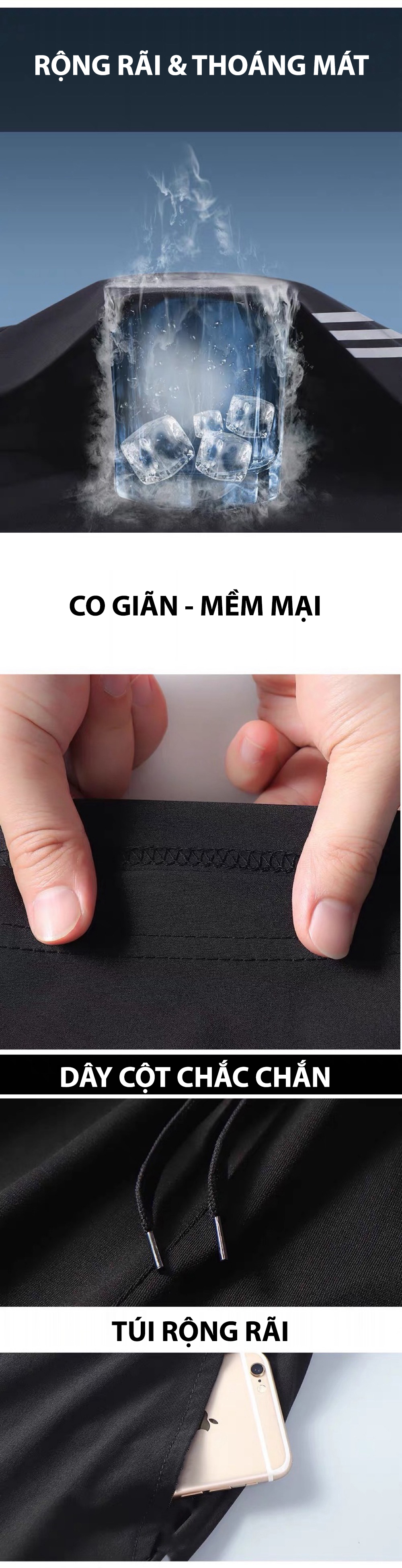 Thông tin cơ bản : - Chất liệu : Vải Sợi polyester (polyester) - Quần Có túi hai bên - Form dáng rộng rãi, vải mỏng thoáng mát , phù hợp với mùa hè - Thích hợp : Chạy bộ, tập gym, chơi các môn thể thao ngoài trời, mặc thường ngày,… - Quần short nhanh rô, thoáng khí & thầm hút mồ hôi - Kích cỡ : M, L, XL, 2XL, 3XL, 4XL, 5XL (Vui lòg tham khảo bảng size) * Giới thiệu chi tiết : - Kiểu dáng đơn giản, hết sức năng động. Sản phẩm dễ dàng phối với áo thun, thích hợp trong mọi hoạt động. - Chất liệu vải co dãn 4 chiều, không phai, không xù, không bám dính, thoải mái khi mặc. - Màu sắc: đen cơ bản kết hợp với các đường kẻ in rất phong cách - Phong cách: Đơn giản, trẻ trung, nam tính cho dù bạn sử dụng trong hoàn cảnh nào - Đường may tinh tế, tỉ mỉ trong từng chi tiết làm tăng độ thẩm mỹ của chiếc quần short - Chất lượng sản phẩm tốt, giá cả hợp lý, sử dụng lâu dài và tiện dụng