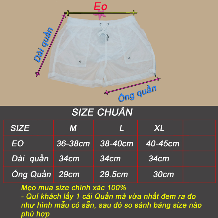 Mua tại TiktokQuần siêu mỏng vải dù Vải dù siêu mỏng, bên trong có lớp lót lưới Phù hợp : đi biển, mặc ngủ Chất thoáng mát, phù hợp cho mùa hè