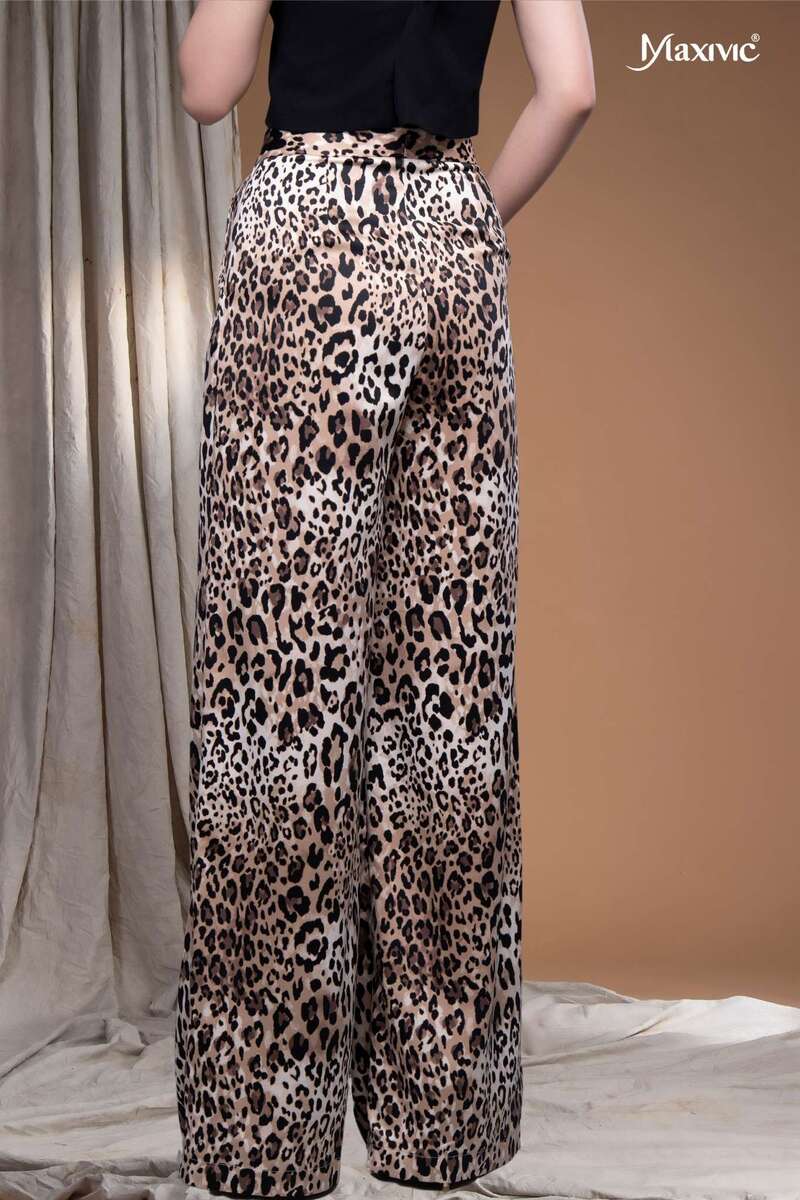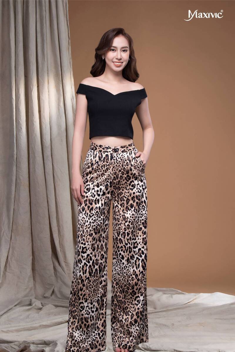 - Quần ống rộng lưng cao hoạ tiết da beo giúp che khuyết điểm tốt, mang lại sự thanh lịch và thoải mái cho người mặc.