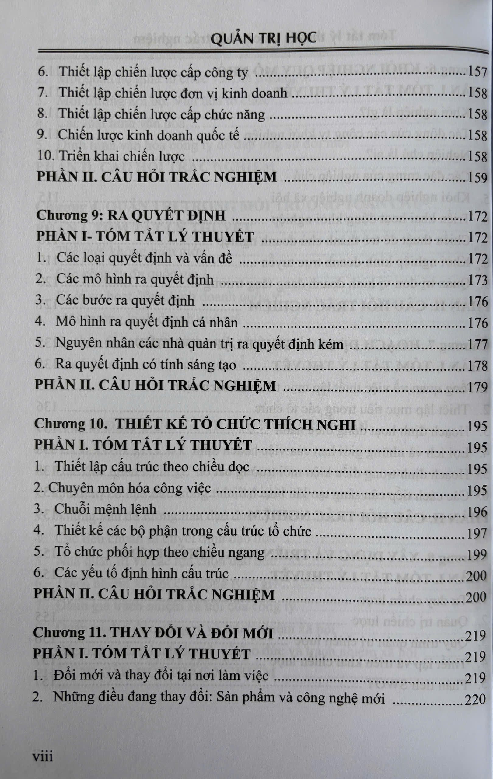 Quyển sách QUẢN TRỊ HỌC: TÓM TẮT LÝ THUYẾT VÀ CÂU HỎI TRẮC NGHIỆM này được biên soạn nhằm giúp các bạn Sinh viên dễ dàng hơn trong việc học, ôn tập và làm bài