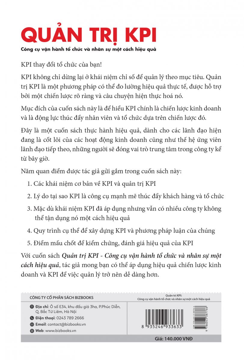 Quản trị KPI không đơn thuần chỉ là phương pháp giúp ban lãnh đạo nắm bắt biến động trong thành tích kinh doanh mà còn là “động lực học thúc đẩy tổ chức”. Sở hữu ngay cuốn sách này chắc chắn sẽ giúp các nhà quản trị áp dụng hiệu quả chiến lược kinh doanh và KPI để việc quản lý trở nên dễ dàng hơn, đưa vị thế công ty vươn xa trong thương trường và tạo nên những bước nhảy vọt trong việc phát triển doanh nghiệp.