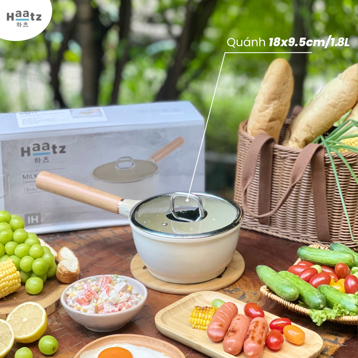 Quánh chống dính phủ gốm Haatz Hàn Quốc size 18cm vung kính đáy từ