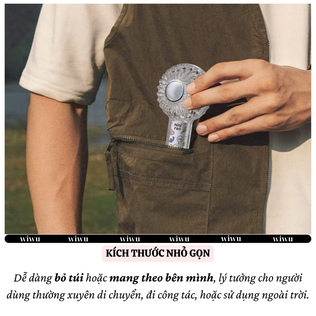 Mua tại Tiktok️ WlWU Mini Fan Wi-FS012 – Quạt Cầm Tay Cao Cấp Dành Cho Phong Cách Sống Di Động Mát lạnh tức thì – Nhỏ gọn – Thời thượng THIẾT KẾ ĐẲNG CẤP, NHẸ NHÀNG VÀ DI ĐỘNG WlWU Mini Fan Wi-FS012 mang phong cách thiết kế tối giản, tinh tế, đúng chuẩn của một thương hiệu phụ kiện công nghệ quốc tế. Sản phẩm được hoàn thiện từ nhựa ABS cao cấp, với phần thân trong suốt in họa tiết trẻ trung, hiện đại, tạo nên vẻ ngoài thời trang và độc đáo. Kích thước nhỏ gọn, dễ dàng bỏ túi hoặc mang theo bên mình, lý tưởng cho người dùng thường xuyên di chuyển, đi công tác, hoặc sử dụng ngoài trời. SỨC GIÓ MẠNH MẼ TRONG THÂN HÌNH NHỎ GỌN Đừng để vẻ ngoài nhỏ bé đánh lừa bạn — Wi-FS012 được trang bị động cơ tốc độ cao cùng thiết kế cánh quạt tối ưu khí động học, giúp tạo ra luồng gió mạnh mẽ nhưng vẫn êm ái. Phù hợp cho cả sử dụng trong phòng làm việc, khi đi bộ ngoài trời, hoặc trong các hoạt động dã ngoại. PIN LÂU – SẠC NHANH – LINH HOẠT TRONG MỌI HOÀN CẢNH Với dung lượng pin 1200mAh, WlWU Mini Fan Wi-FS012 mang lại thời gian sử dụng liên tục lên tới 6 giờ (tuỳ cấp độ gió), giúp bạn yên tâm làm mát suốt cả ngày dài. Quạt hỗ trợ sạc nhanh qua cổng USB, có thể sạc dễ dàng bằng laptop, sạc dự phòng hoặc củ sạc điện thoại thông thường – cực kỳ tiện lợi và linh hoạt trong mọi tình huống. ️ CHẤT LƯỢNG BẢO CHỨNG TỪ WlWU – THƯƠNG HIỆU TOÀN CẦU WlWU – thương hiệu công nghệ đến từ Trung Quốc với hàng loạt phụ kiện nổi tiếng toàn cầu – luôn đặt tiêu chuẩn chất lượng lên hàng đầu. Quạt Wi-FS012 được bảo hành chính hãng 6 tháng (1 đổi 1), cam kết sản phẩm không chỉ đẹp mà còn bền bỉ theo thời gian. THÔNG SỐ KỸ THUẬT NỔI BẬT
