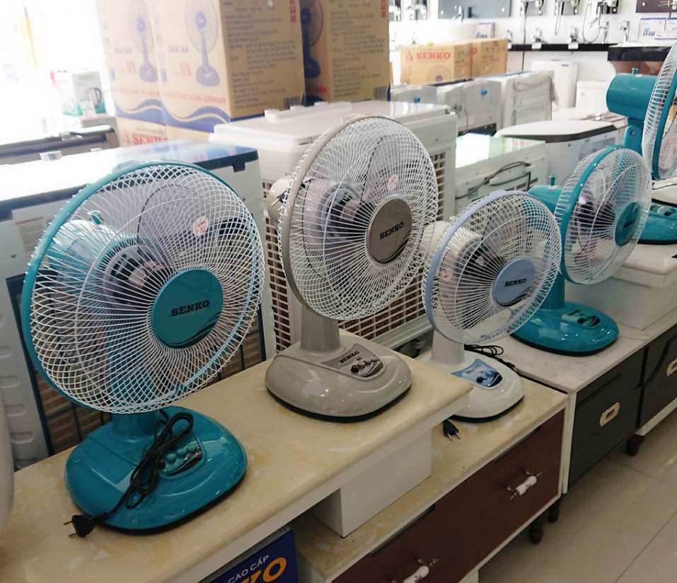 Quạt bàn Senko B1213 thiết kế nhỏ gọn, màu sắc bắt mắt, công suất hoạt động 40W làm mát hiệu quả với 3 cánh quạt, động cơ bạc thau với chất liệu 100% dây đồng