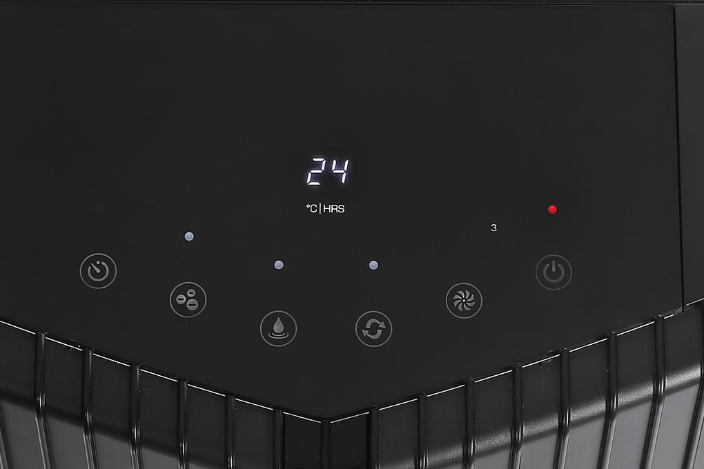 Tính năng nổi bật – 3 chế độ gió: Gió thường, gió tự nhiên và chế độ ngủ. – Chức năng phun sương điều chỉnh 3 mức. – Tạo ion âm làm sạch không khí trong phòng. – Chức năng đuổi muỗi. – Bàn phím cảm ứng linh hoạt – Mặt kính thiết kế sang trọng – Kiểu dáng sang trọng lịch sự – Nhiệt kế đo nhiệt độ phòng – Vận hành cực êm THÔNG SỐ KỸ THUẬT Điện áp 220 V / 50 Hz Công suất 90W 3 chế độ gió thường/tự nhiên/chế độ ngủ Dung tích bình chứa 2L Màn hình hiển thị chế độ thông số rõ nét Chức năng hẹn giờ và nhiệt kế đo nhiệt Bàn phím cảm ứng Điều khiển linh hoạt