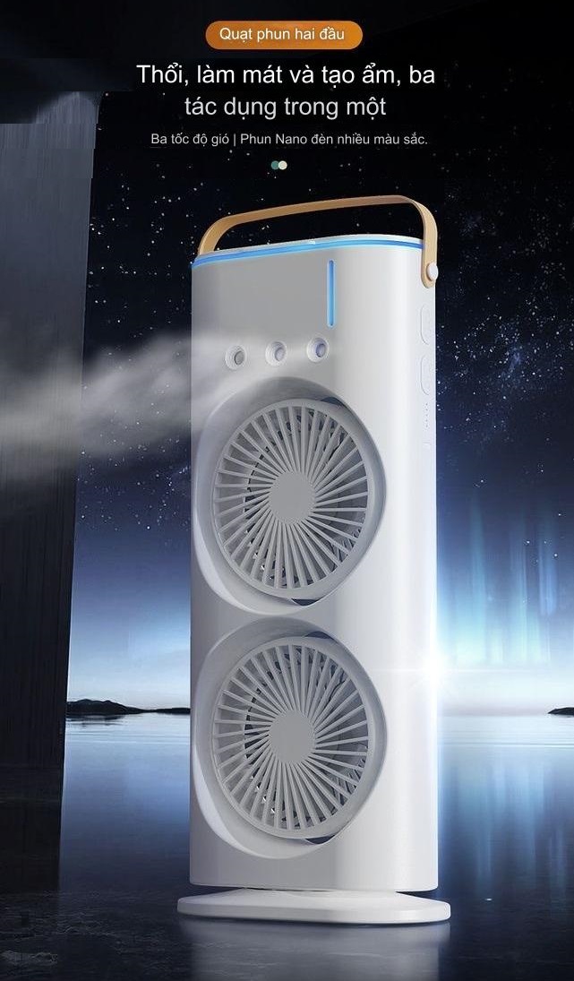Quạt phun sương Youpin AQUA BREEZE, 2 lồng quạt, có đèn LED, xoay tốc năng 90° làm mát rộng, pin dung lượng lớn