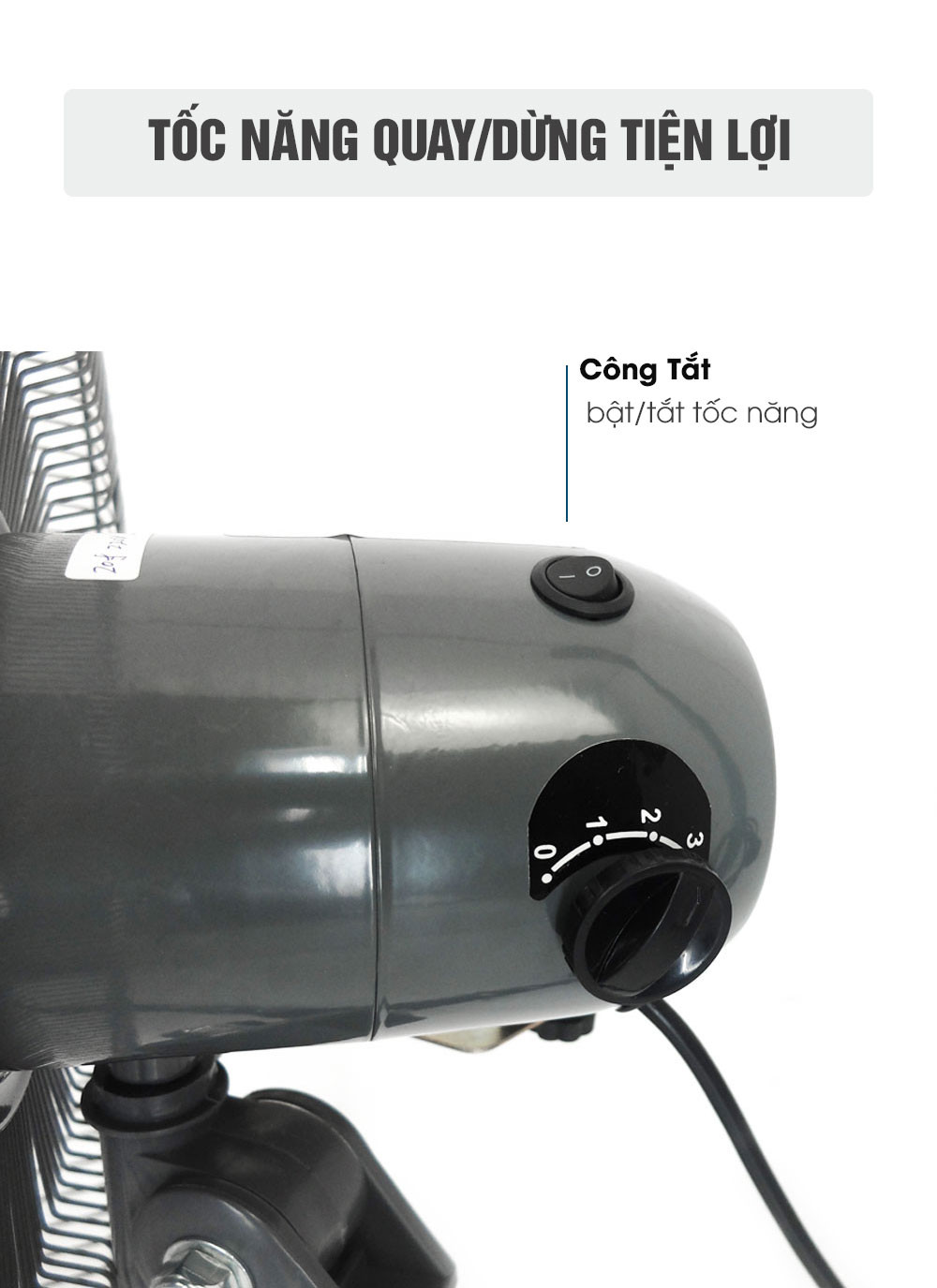 Đặc điểm nổi bật Thiết kế chân đế quạt to, vững chắc, không rung lắc khi hoạt động 5 cánh quạt sải cánh dài 39 cm làm mát hiệu quả trên không gian lớn Quạt