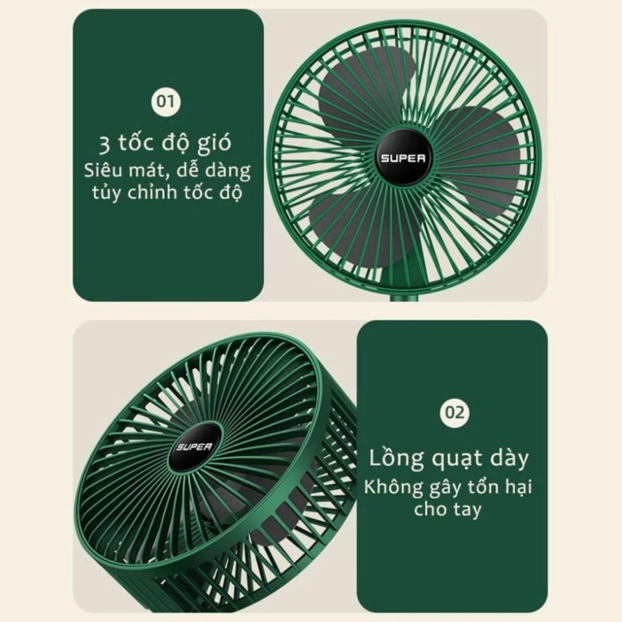 Quạt tích điện để bàn mini gấp gọn là sự lựa chọn hoàn hảo cho những ai cần một chiếc quạt nhỏ gọn, tiện lợi nhưng vẫn đảm bảo khả năng làm mát hiệu quả. Với thiết kế thông minh, tính năng linh hoạt và khả năng sạc qua cổng USB, đây sẽ là người bạn đồng hành không thể thiếu trong những ngày hè nóng bức.