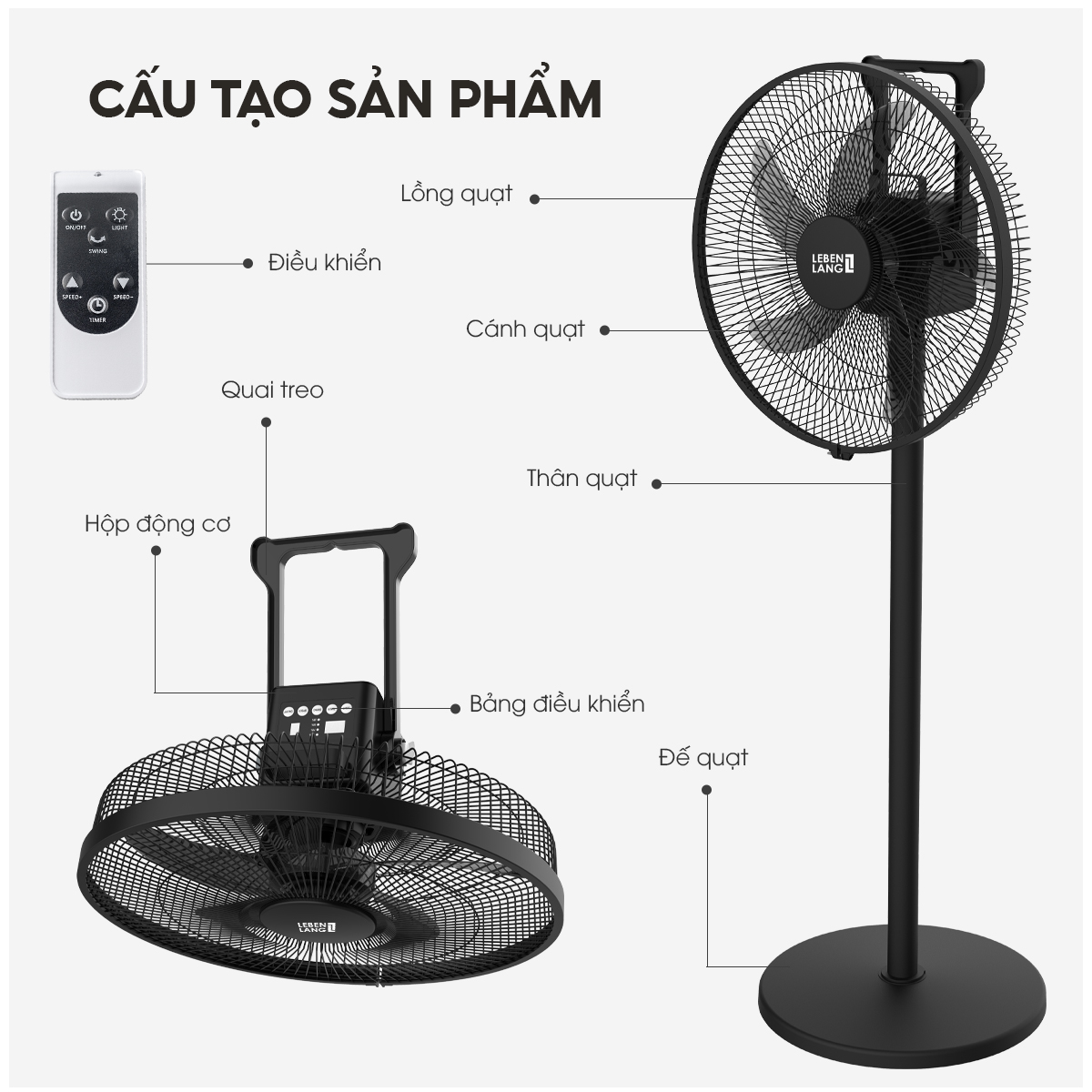 - 5 Chức Năng Trong Một: Quạt Lebelang LBL1702 Đa dạng chức năng sử dụng bao gồm quạt đứng, quạt để bàn, quạt để trên sàn, quạt treo tường và quạt treo trần, phù hợp cho mọi nhu cầu