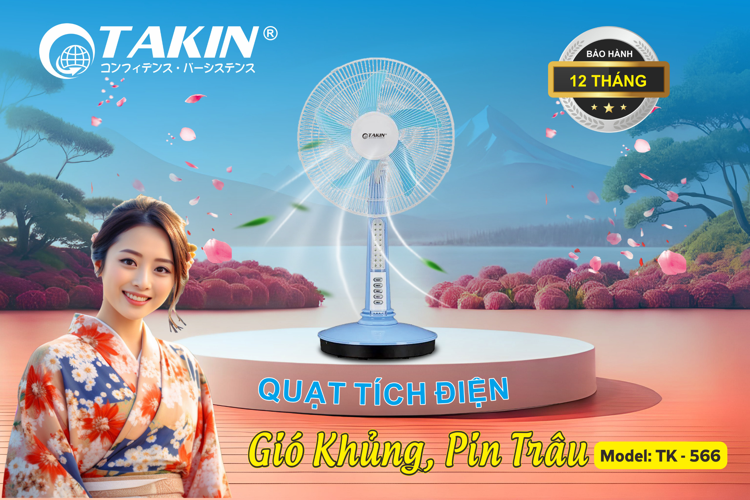 Quạt tích điện Takin TK-566 dễ dàng sử dụng, mang đến gió mát, không thua kém gì quạt điện. Sản phẩm này chạy bằng động cơ đồng nguyên chất. Dưới đây là thông số kỹ thuật sản phẩm: