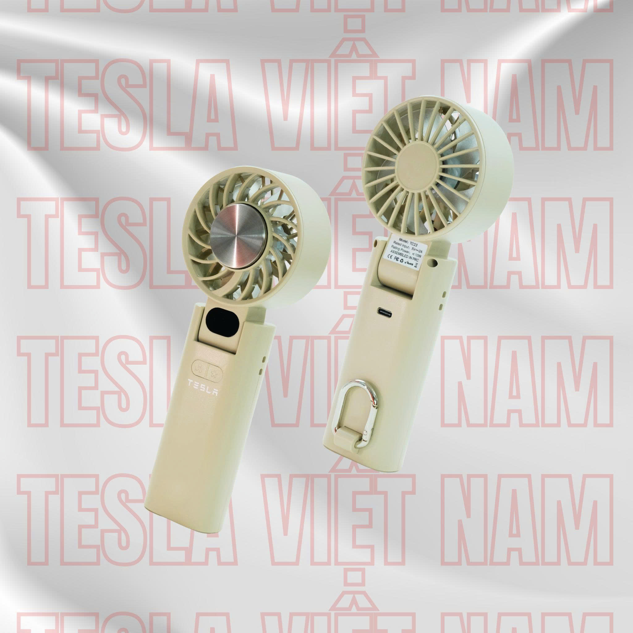 Mua tại Tiktok• Thương hiệu: Tesla Việt Nam • Mã sản phẩm: TC23 • Dung lượng PIN: 4000 mAh • Đầu vào định mức: DC 5.0V-2.0A • Cổng sạc vào: Type-C • Chất liệu: nhựa ABS/PP/linh kiện điện tử • Công suất : ≤10W • Kích thước sản phẩm: 70x38x185mm • Trọng lượng sản phẩm: 207±2 • Màu sắc: Trắng, Xanh băng, Vàng mơ • Tiêu chuẩn thực hiện: GB4706.1-2025 GB4706.27-2008 • Sử dụng động cơ không chổi than, có sò làm lạnh