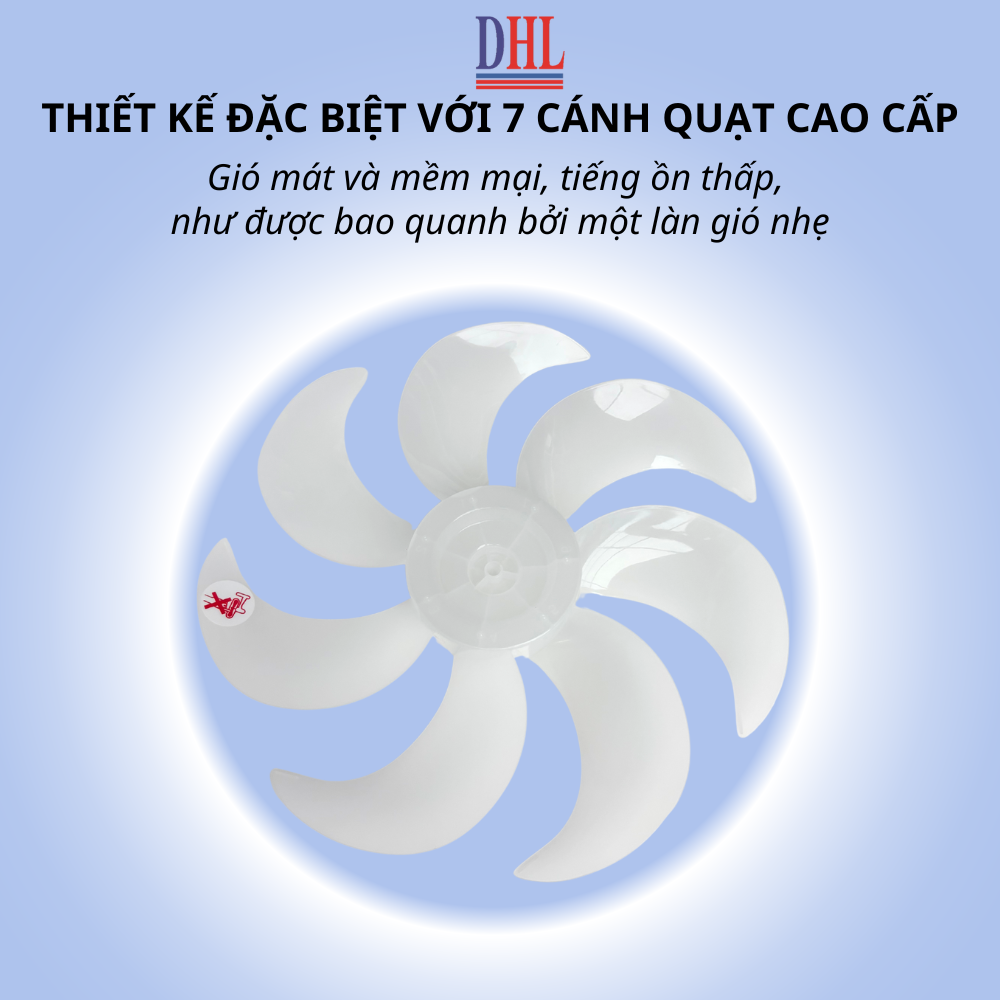 Thiết kế gọn gàng, chắc chắn Quạt 7 cánh cho làn gió cực kì mát mẻ Công suất mạnh mẽ 65W Sải cánh quạt rộng 40cm giúp phân tán điều hơn 3 tốc độ gió
