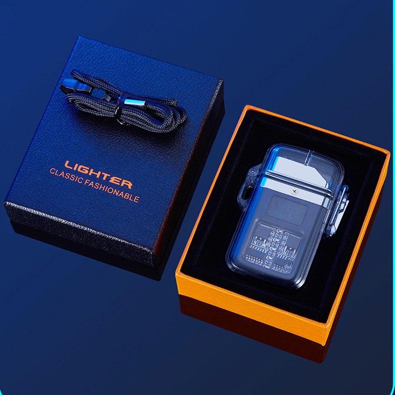 ✨Quẹt Sạc Điện Plasma Chống Nước, Chống Gió, Vỏ Trong Suốt, Có màn hình hiển thị pin