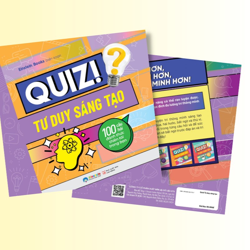 Và Bộ sách Quiz! Tư duy sang tạo không nhằm mục đích đo lường trí thông minh mà giúp bạn nâng cao một trong chín loại trí thông minh của con người. Hy vọng thông qua cuốn sách này, bạn sẽ thông minh hơn và thành công hơn trong cuộc sống.