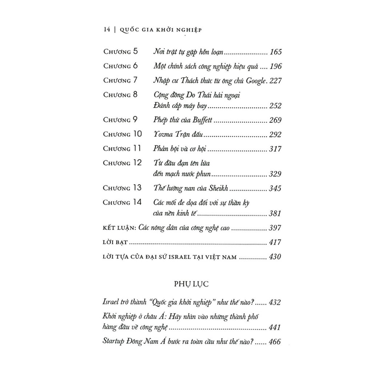 Là câu chuyện viết về sự phát triển thần kỳ của nền kinh tế Israel từ lúc lập quốc cho đến khi trở thành quốc gia có nền công nghệ hàng đầu thế giới. Quyển sách này có thể trả lời cho những thắc mắc làm thế nào một đất nước nhỏ bé lại có thể tồn tại giữa sự thù địch của các quốc gia lân cận, đối phó với những cuộc chiến giữ vững bờ cõi mà vẫn tạo ra sự sáng tạo vượt bậc trong các lĩnh vực công nghệ, quân sự và dân sự.