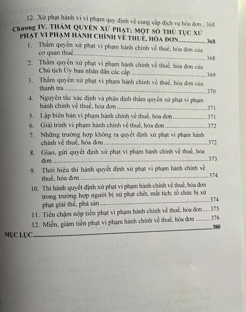 Phần thứ tư: Xử PHẠT VI PHẠM HÀNH CHÍNH TRONG LĨNH VỰC THUẾ, HÓA ĐƠN.