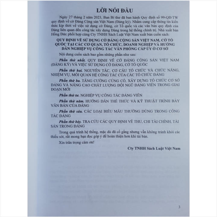 Nhà sách Nam Việt – Namvietbook xin trân trọng giới thiệu sách Quy Định về Sử Dụng Cờ Đảng Cộng Sản Việt Nam, Cờ Tổ Quốc tại các Cơ Quan Tổ Chức Doanh Nghiệp và Hướng Dẫn Nghiệp Vụ Công Tác Văn Phòng Cấp Ủy Ở Cơ Sở (theo Quy định số 99-QĐ/TW ngày 27/2/2023)
