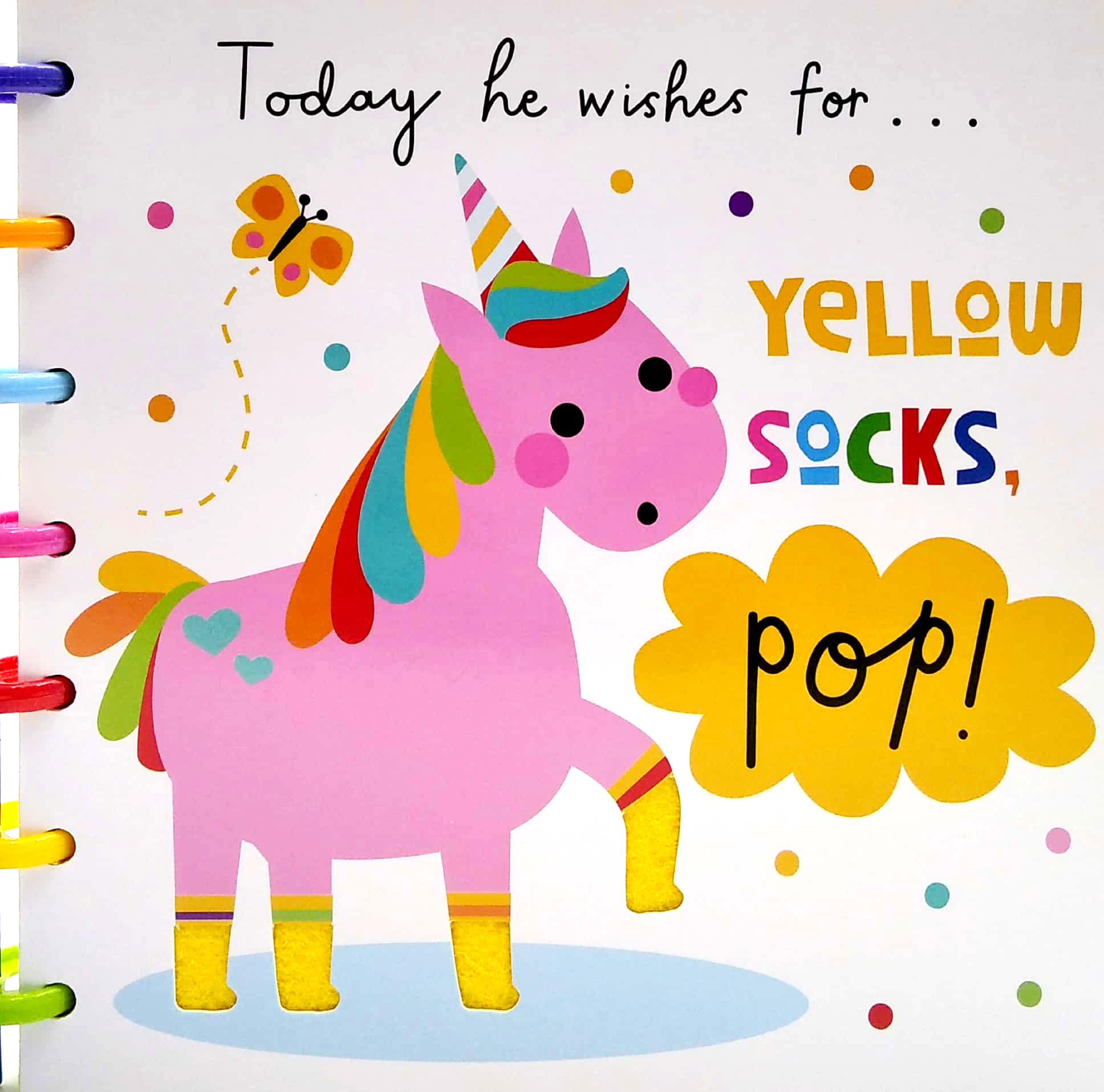 Join Unicorn in this sweet book, all about first colours! The sweet story and bright illustrations will engage little ones. With colourful felt between each die-cut card page and rainbow-coloured plastic loops holding the pages together, this tactile and durable book is great for young children to explore with their hands. FIRST COLOURS BOOK WITH FELT PAGES AND PLASTIC LOOPS ON SPINE