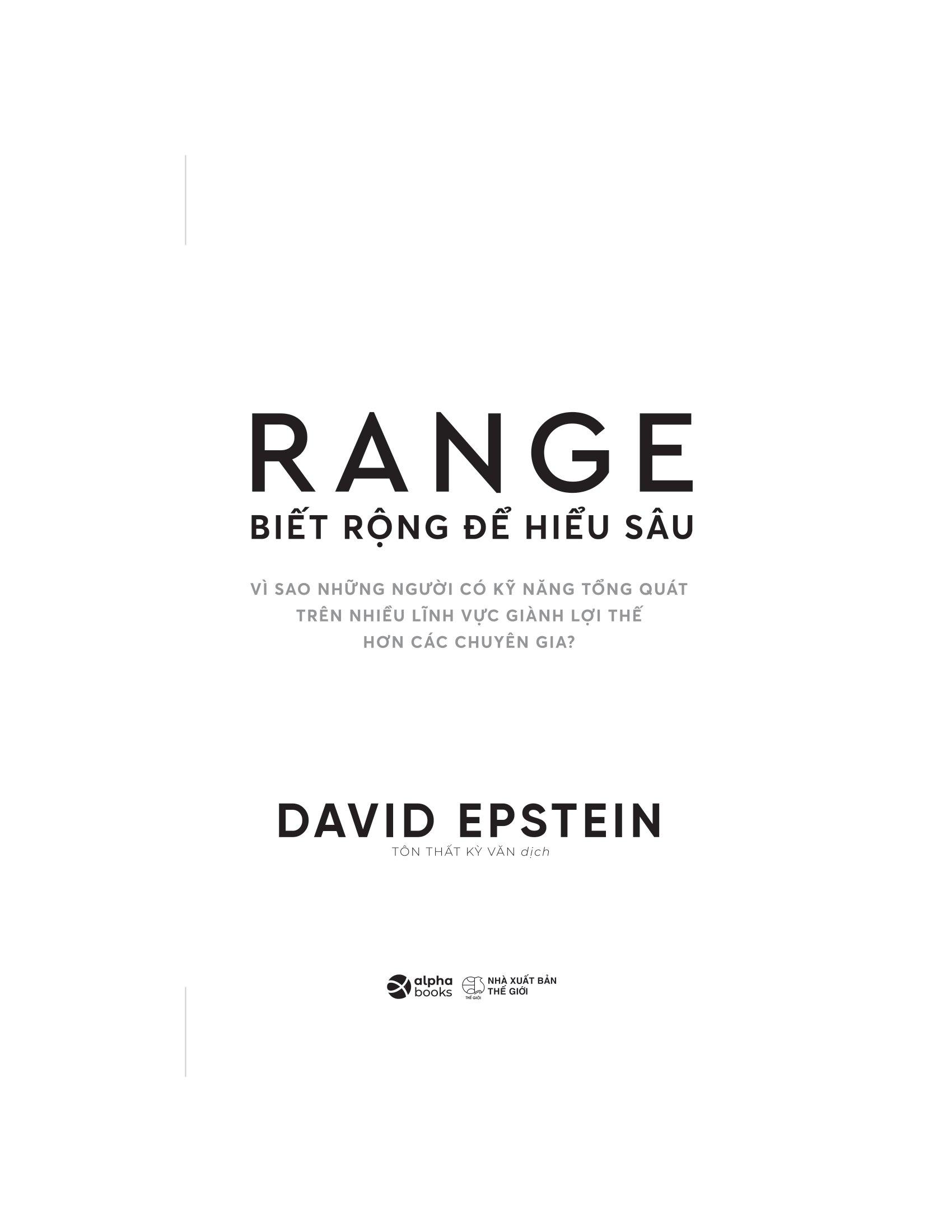 Range - Hiểu Sâu, Biết Rộng Kiểu Gì Cũng Thắng Trong cuốn sách Hiểu sâu, Biết rộng – Kiểu gì cũng thắng , tác giả David Epstein cung cấp cho bạn đọc các câu chuyện