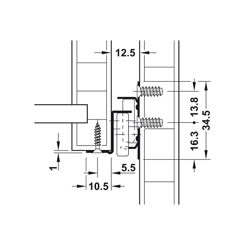 - Kích thước : chiều rộng ray hộp tối đa = chiều rộng lọt lòng + 25mm