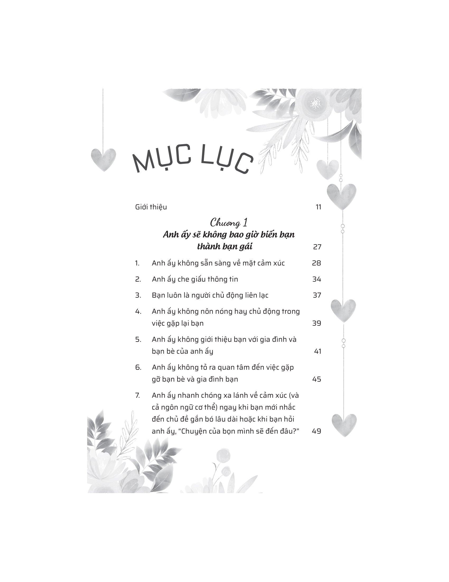 Và cuốn sách “Red Flag trong tình yêu” sẽ giúp bạn sẽ có cái nhìn sâu sắc hơn về cách một người đàn ông suy nghĩ và tương tác với một người phụ nữ khi anh ta không thực sự quan tâm đến cô ấy. Vớicuốn sách này, bạn sẽ biết được: