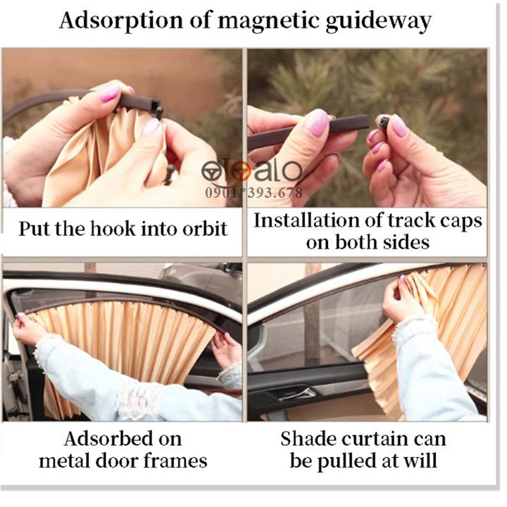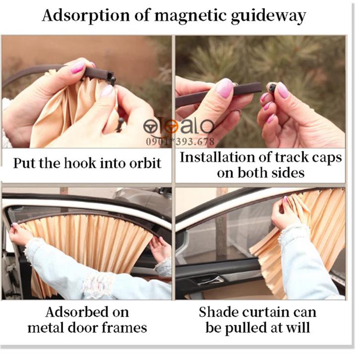 - Bộ rèm che nắng cho xe hơi có nam châm giúp cố định miếng che nắng vào phía bên trong mặt cửa kính, thật tiện lợi khi bạn hạ kính xe mà không phải