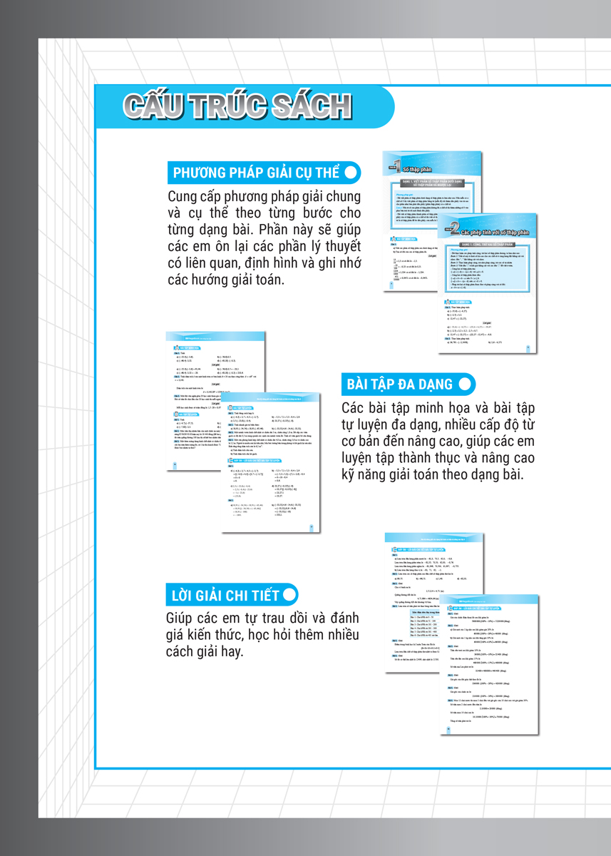 Cuốn sách cũng cung cấp lượng bài tập phong phú, tổng hợp theo nhiều cấp độ từ cơ bản đến nâng cao kèm lời giải chi tiết, để các em trau dồi liên tục, rèn luyện thành thục kỹ năng giải toán theo dạng.