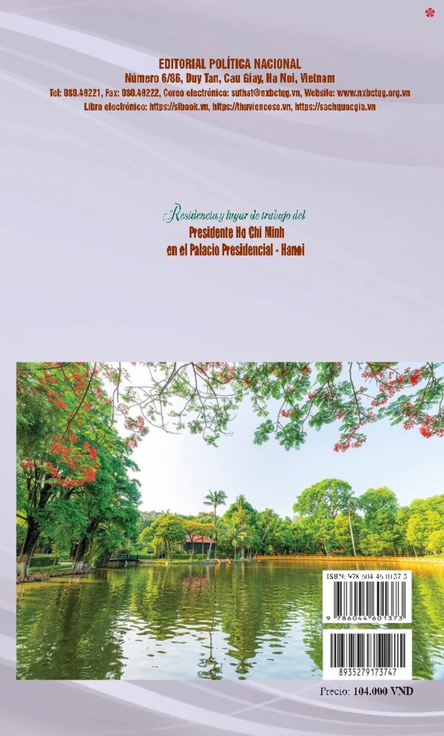 El libro Residencia y lugar de trabajo del presidente Ho Chi Minh en el Palacio Presidencial - Hanoi ofrece a los lectores un recurso valioso que nos ayuda a comprender mejor la vida del amado líder del de la nación vietnamita. El libro recrea de forma realista y lleva al lector a cada pequeño rincón, a cada recuerdo, a cada historia sencilla pero impregnada de significado histórico y humano sobre los lugares asociados al presidente Ho Chi Minh en el Palacio Presidencial como: la Casa 54, la Casa sobre pilotes, la Casa 67, el estanque de peces, el camino de mangos, lentre otros.